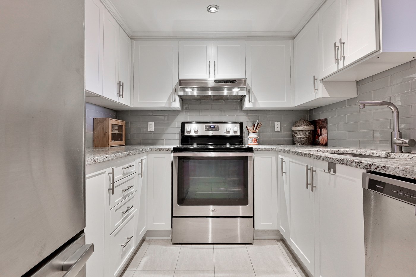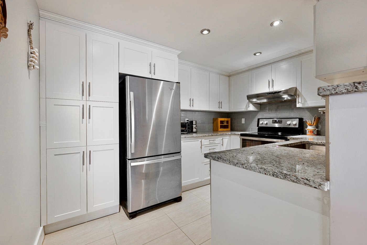 Cuisine fonctionnelle vous offrant beaucoup de rangement avec comptoir de granite.
