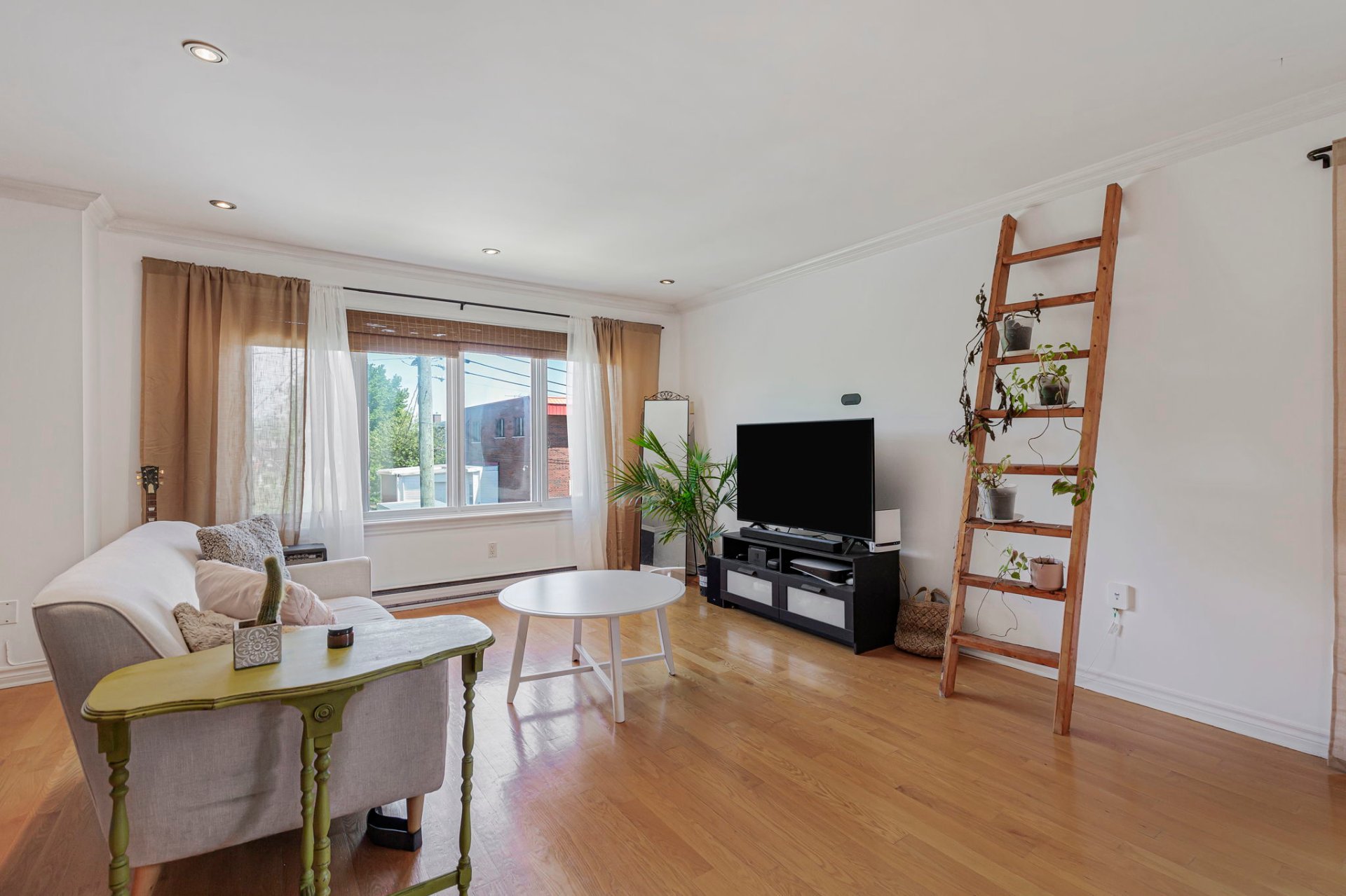 Inclus : Thermopompe, stores en bambou (salon+SAM), support à télévision, tous les luminaires.