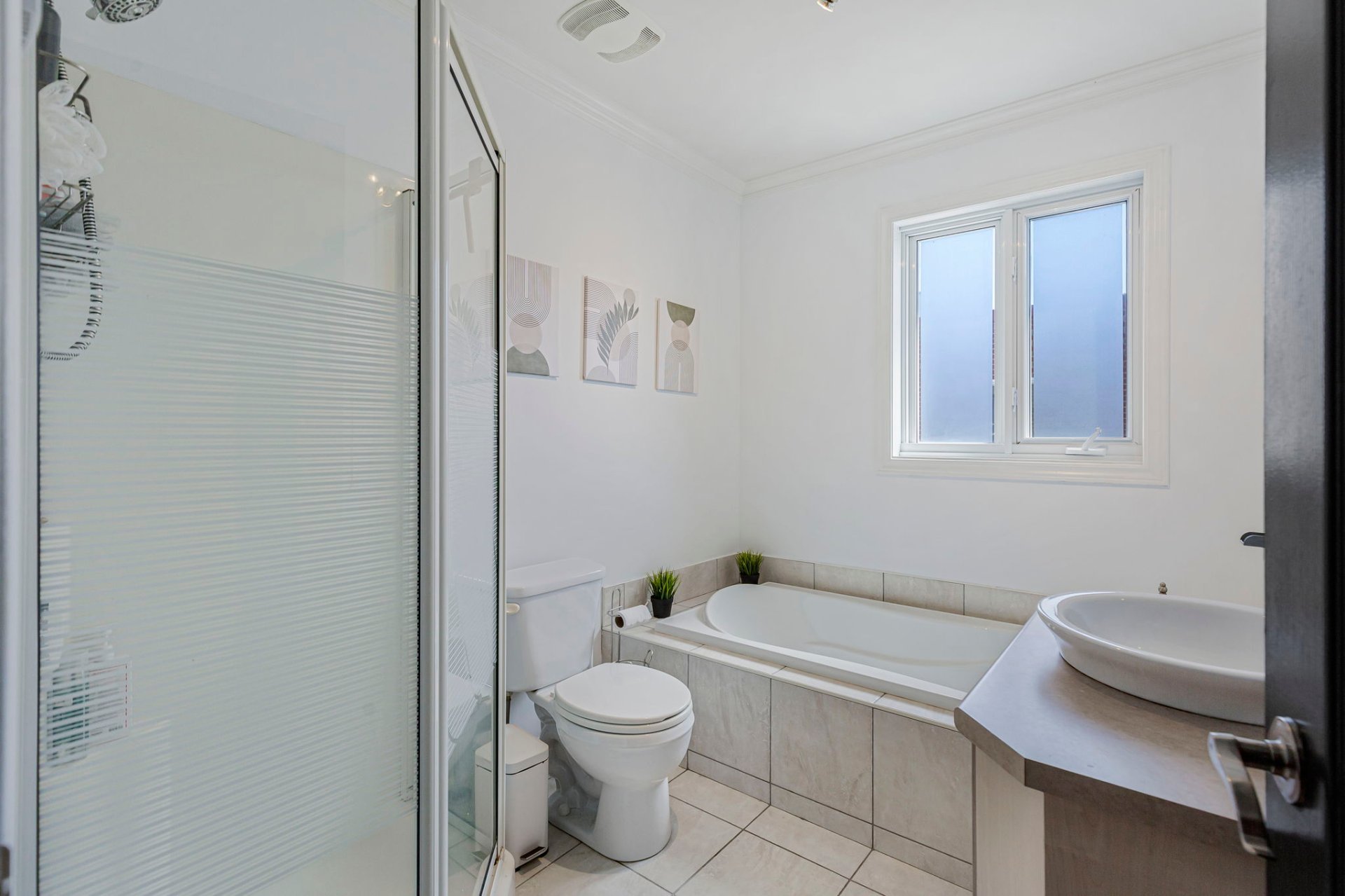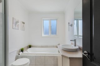 baignoire et douche séparées. L'espace de vie à aire