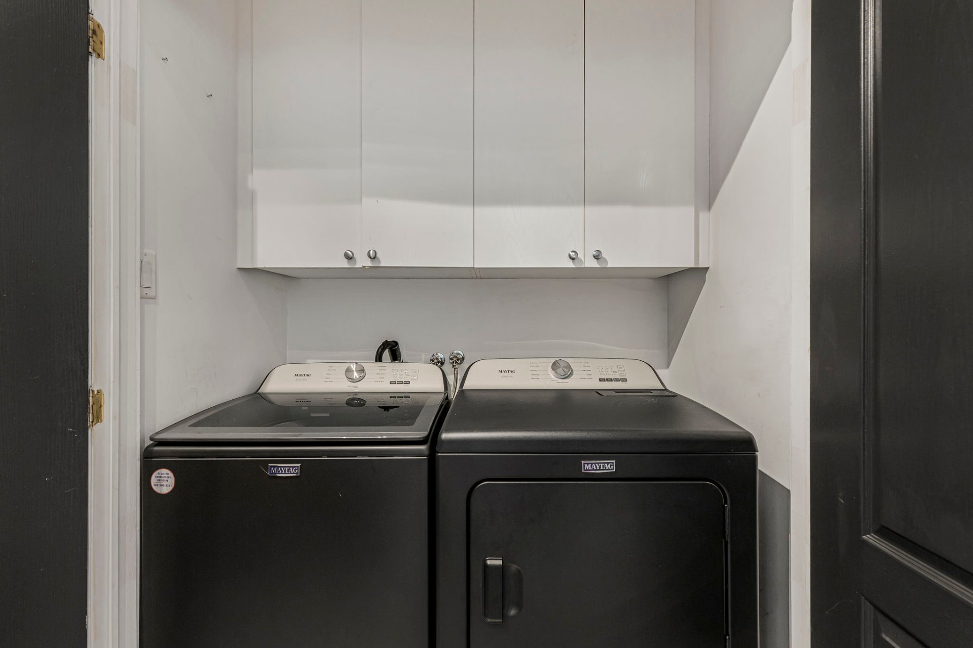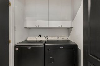 laveuse/sécheuse avec armoires et plusieurs rangements